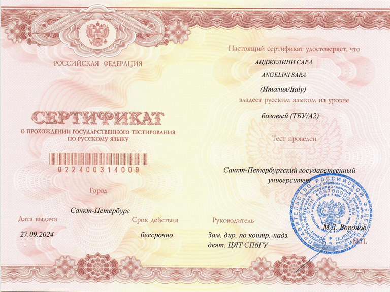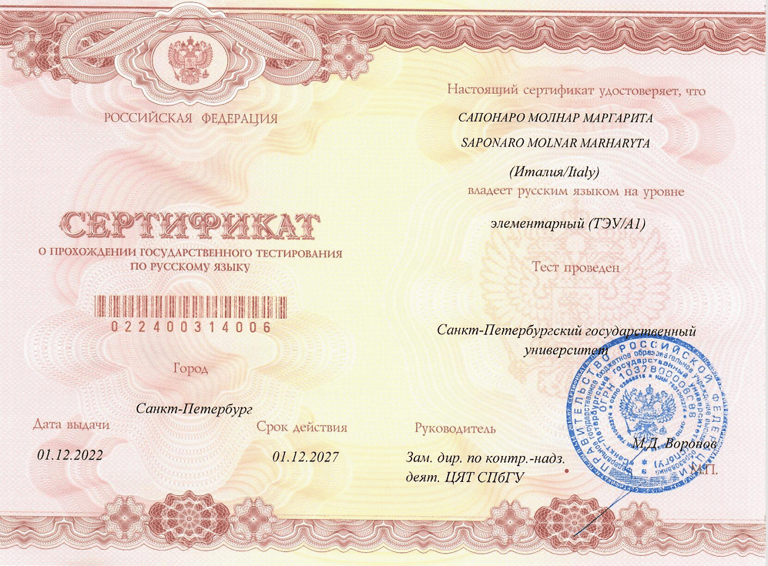Certificazioni di Russo